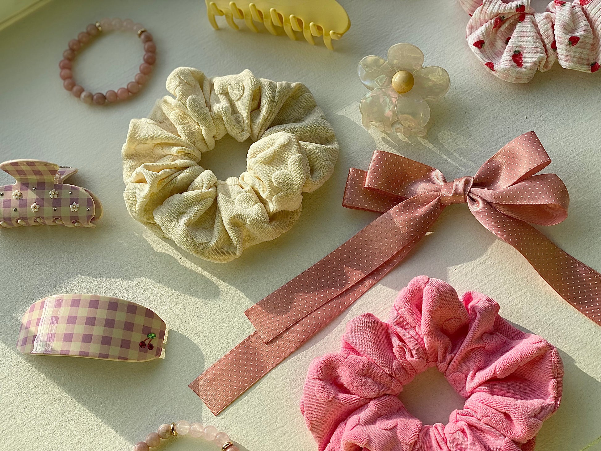scrunchie, bracelet, set of 2 bows, hair claw